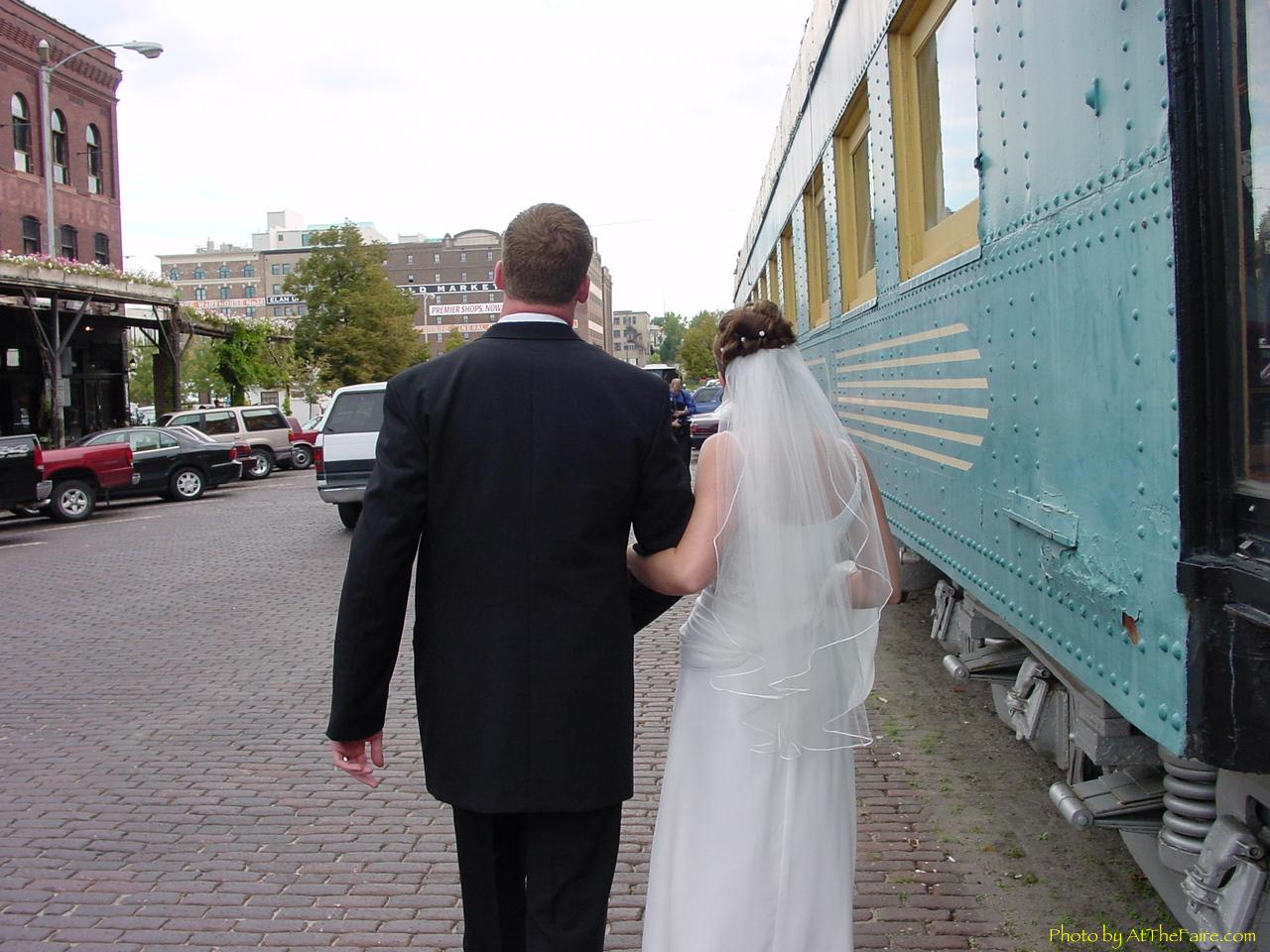 There was a large amount of formal wear this evening due to weddings and, for the younger crowd, homecoming. This couple was getting a picture taken next to the train parked outside of Spaghetti Works. I stood in the background and made bunny ears.