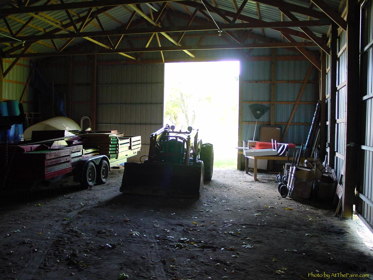 The mayor of Hancock came out and opened the big building for us. I wonder if we will get to play with the big green tractor thing? The open doorway will be one of two that will let patrons in (and out) of this shelter. We will have a few merchants, a performance stage, and the tavern here.